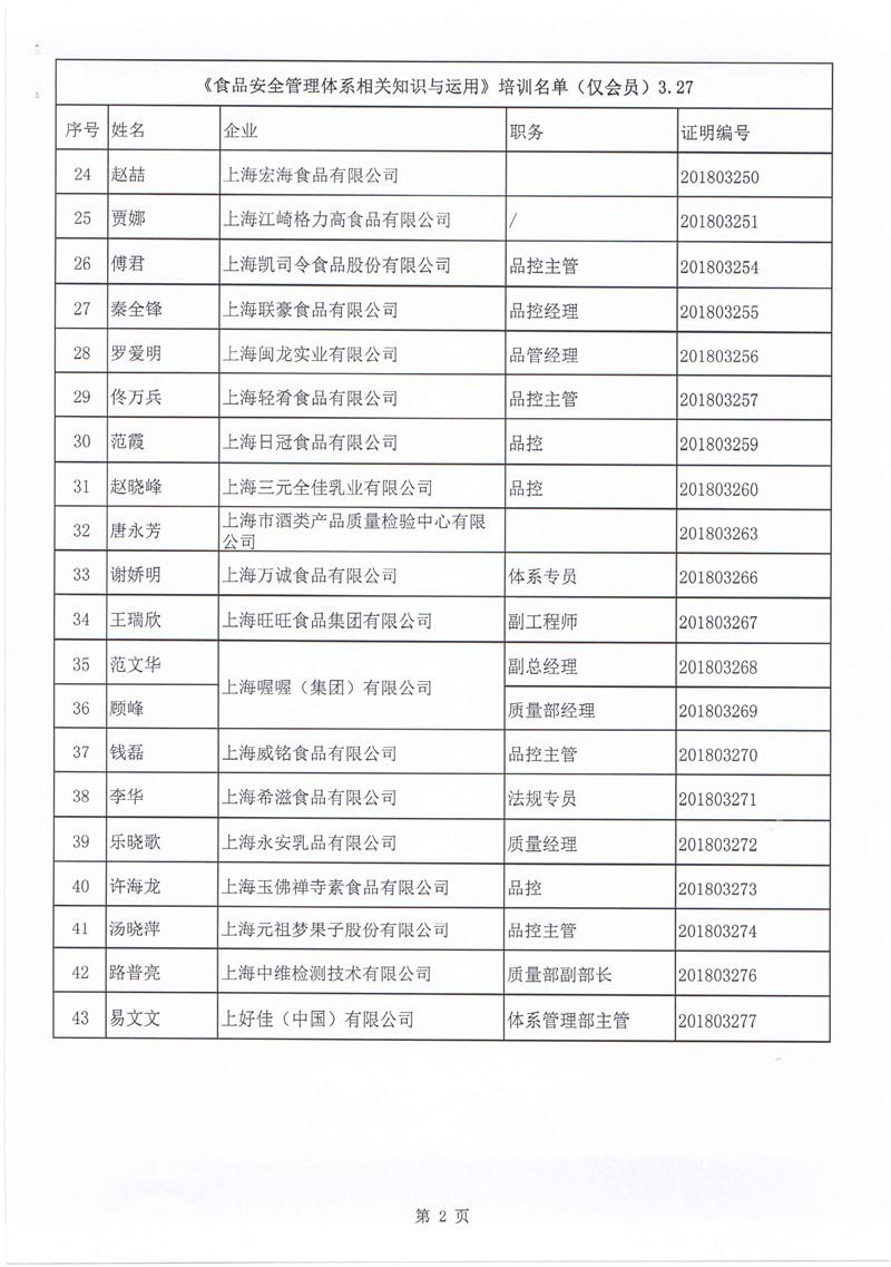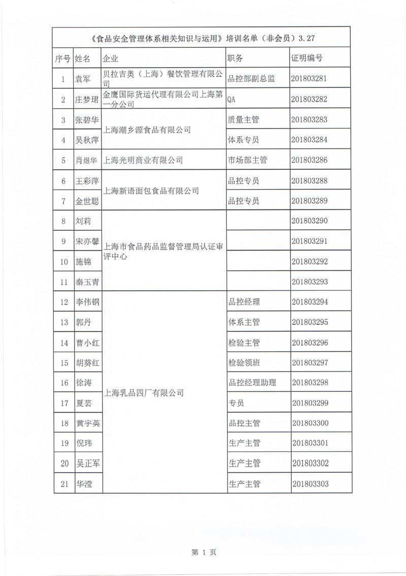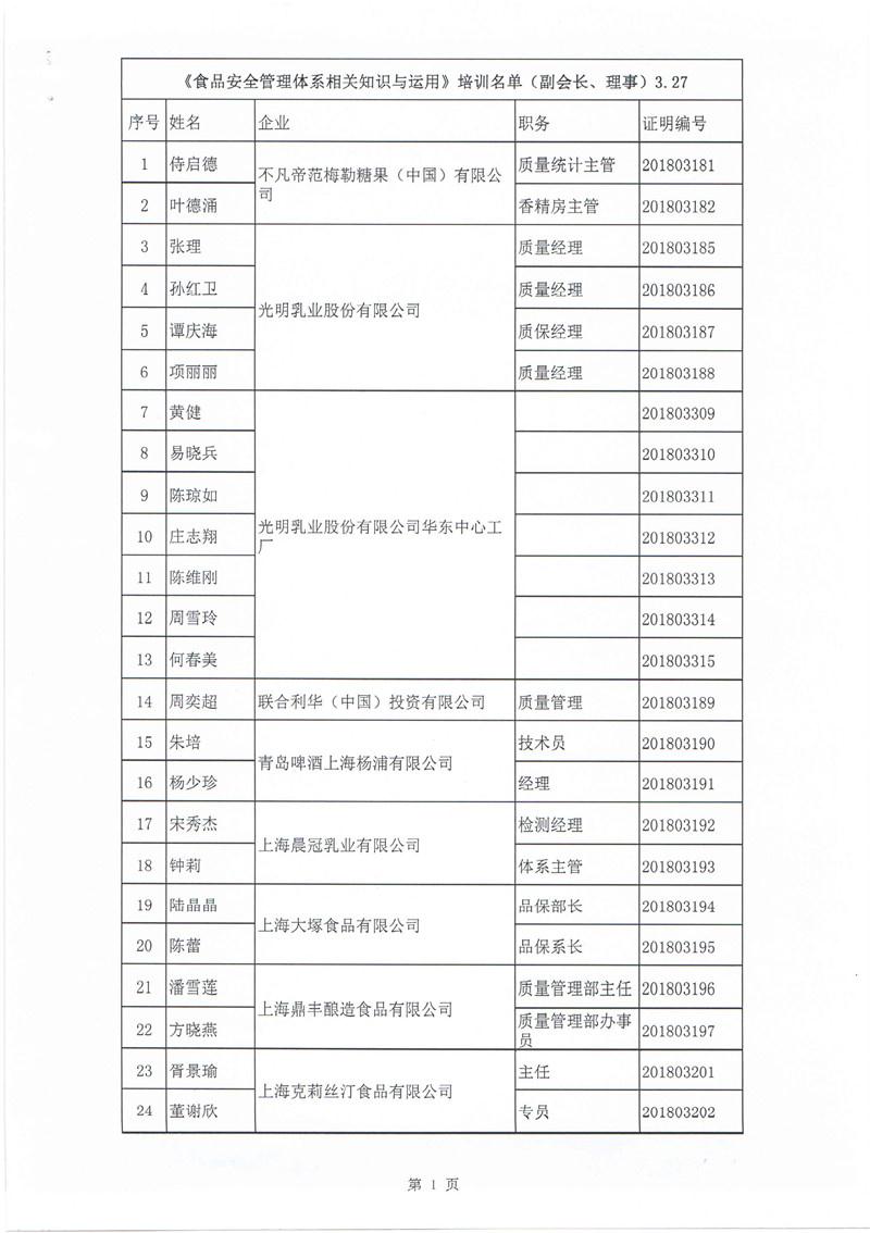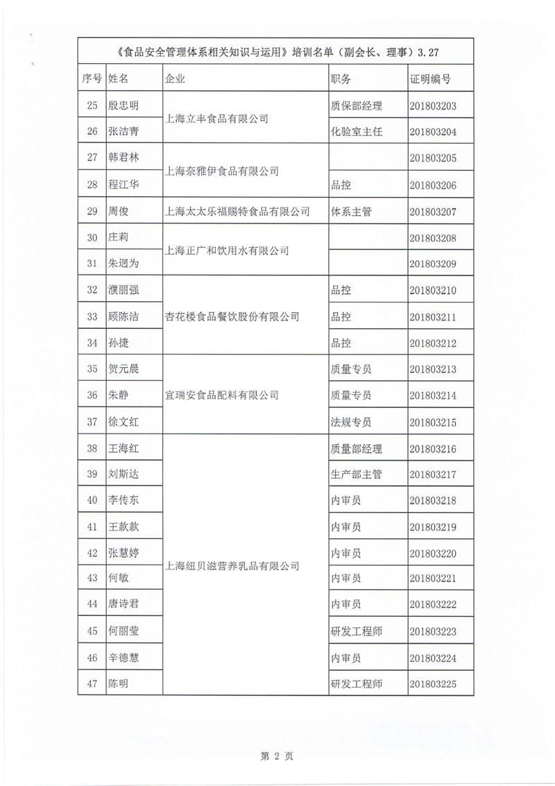—上海市食品化妆品质量安全管理协会举办《食品安全管理体系相关知识与运用》培训班