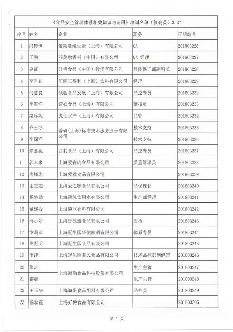 为了进一步落实《上海市建设市民满意的食品安全城市行动方案》中,关于“食品生产企业全面实行良好生产规范(GMP)”的规定,指导食品生产企业建立良好生产规范,完善分析和关键控制点的体系。3月27日,协会借座中国检验认证集团上海有限公司大会堂,举办了《食品安全管理体系相关知识与运用》培训班