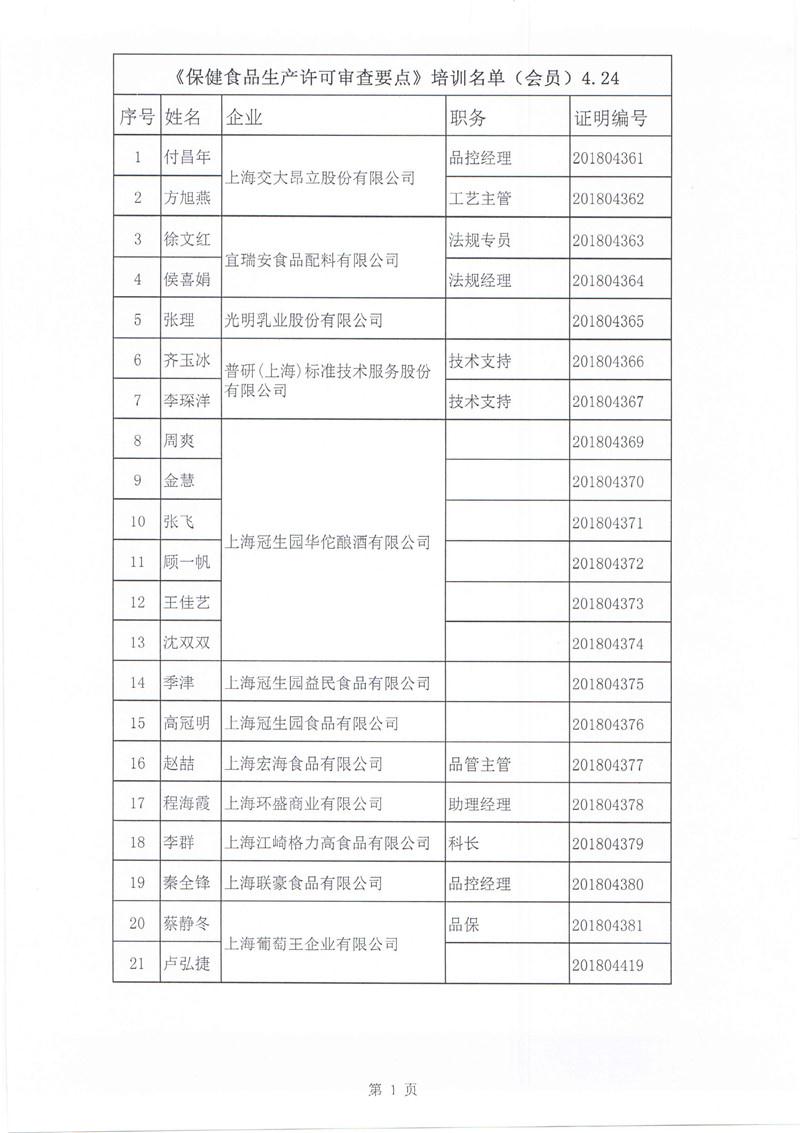 ——上海市食品化妆品质量安全管理协会举办《保健食品生产许可审查要点》培训班