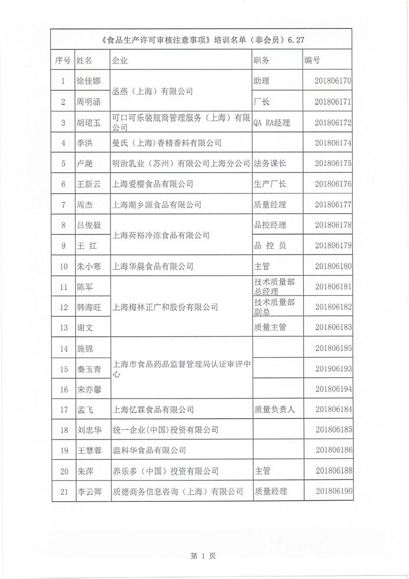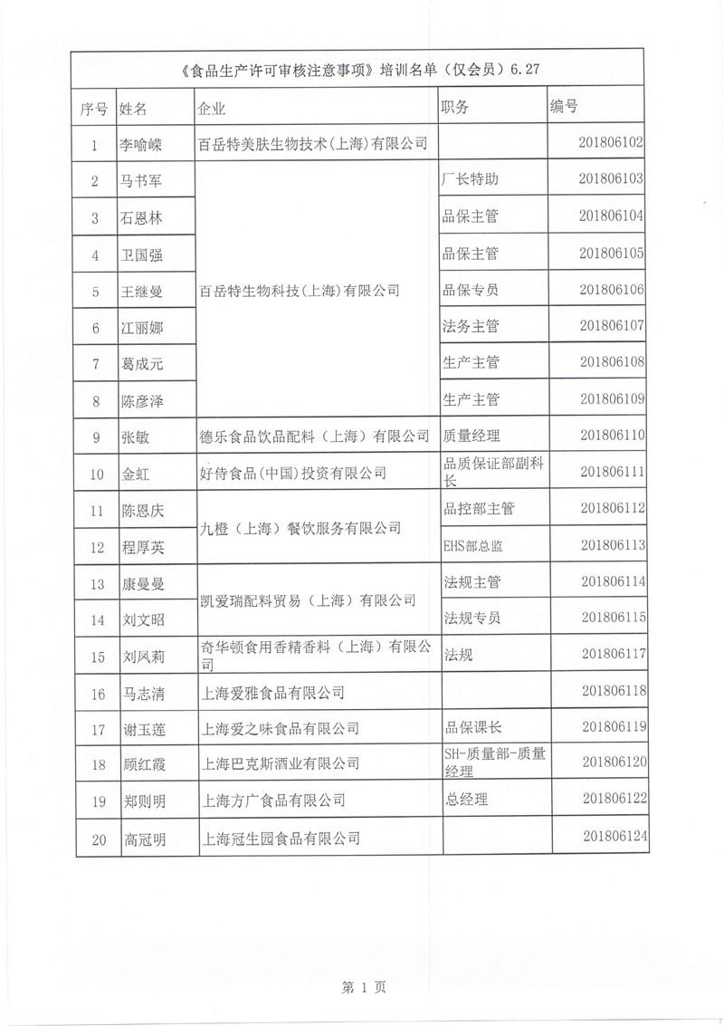 ——上海市食品化妆品质量安全管理协会举办《食品生产许可审核注意事项》培训班