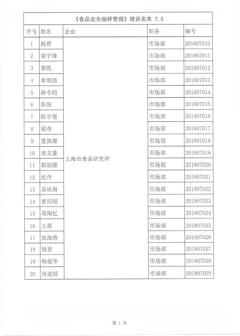 本次《食品安全抽样管理》培训班,有上海市质检院等11家检验机构的54人参加。