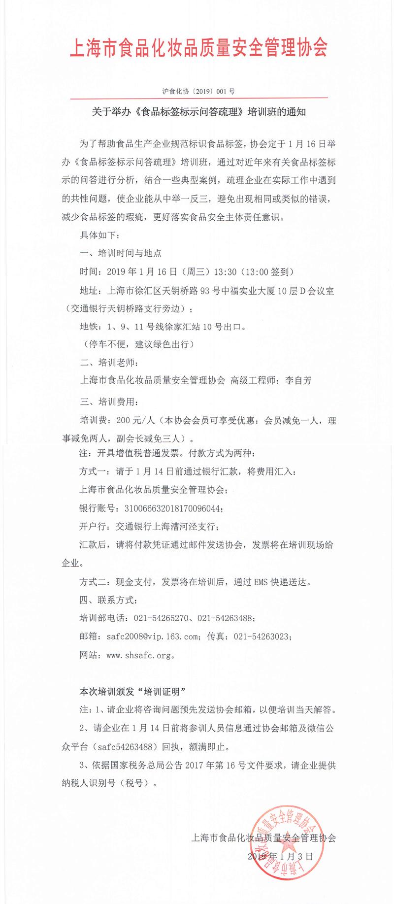 关于举办《食品标签标示问答疏理》培训班的通知
