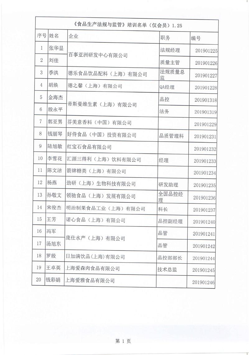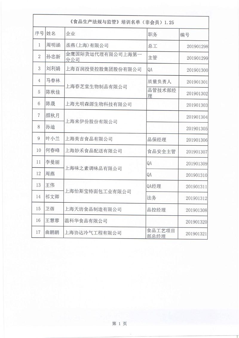 ——上海市食品化妆品质量安全管理协会举办《食品生产法规与监督》培训班