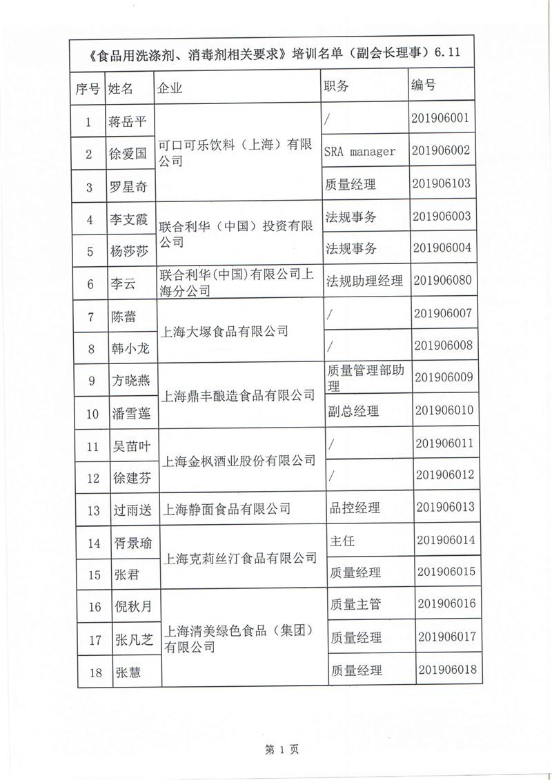 ——上海市食品化妆品质量安全管理协会举办《食品用洗涤剂、消毒剂相关要求》培训班
