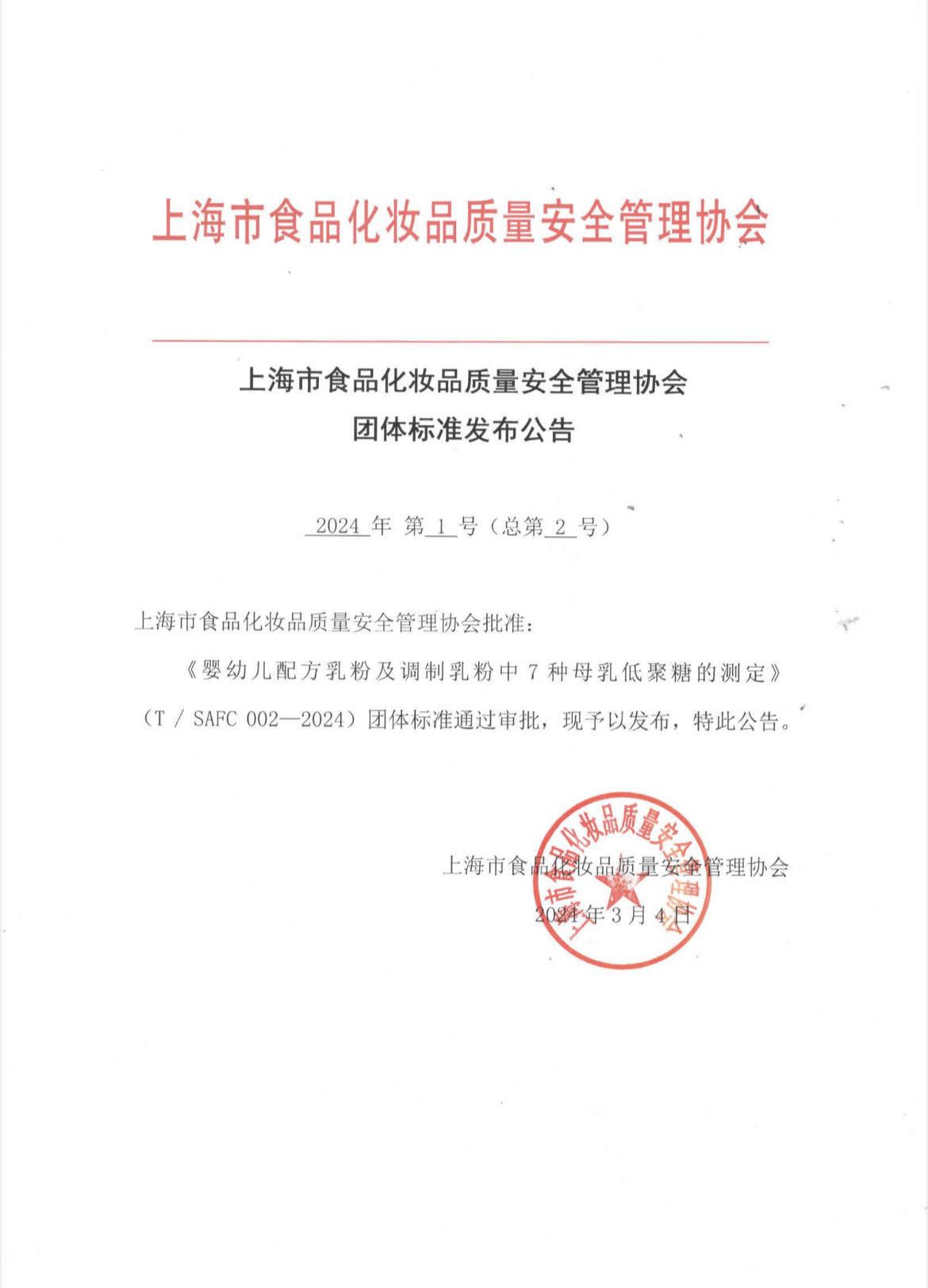 上海市食化协会 团体标准发布公告 2024 年 第 1 号(总第 2 号)